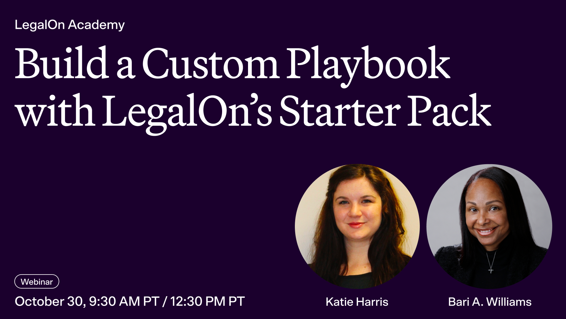Building effective playbooks shouldn't start from zero. In this 30-minute session, LegalOn’s Head of Legal & Legal Content Bari Williams, and Commercial Counsel Katie Harris, will show you how to: