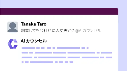社内コミュニケーションツール「Slack」から、直接CorporateOnにASK!することができます。