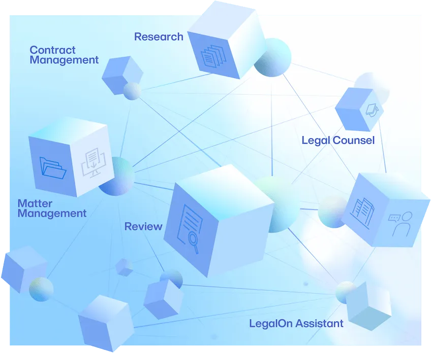 - 同一のプラットフォーム上に構築された法務体制は個別に立ち上げられた法務体制とは違い、相互に連携が可能です。