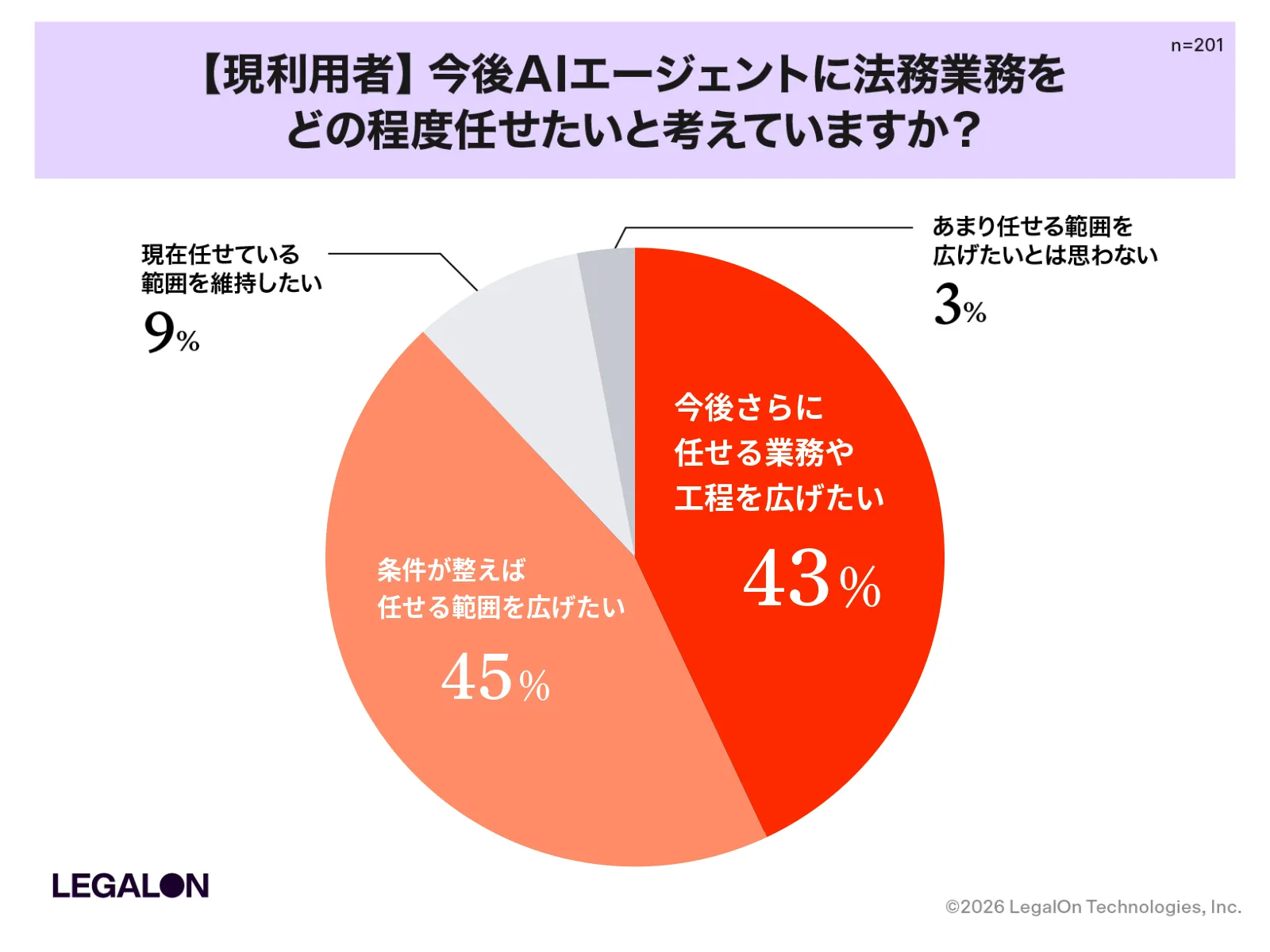 株式会社LegalOn Technologies(本社:東京都渋谷区、代表:代表取締役 執行役員・CEO 角田 望、以下:LegalOn Technologies)は、企業に所属し日常業務として法務業務に関与している会社員および会社役員500名を対象に、法務業務におけるAIエージェント活用の実態調査を実施しました。