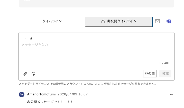 2.非公開タイムライン機能の追加により、機密性の高いコミュニケーションが可能に