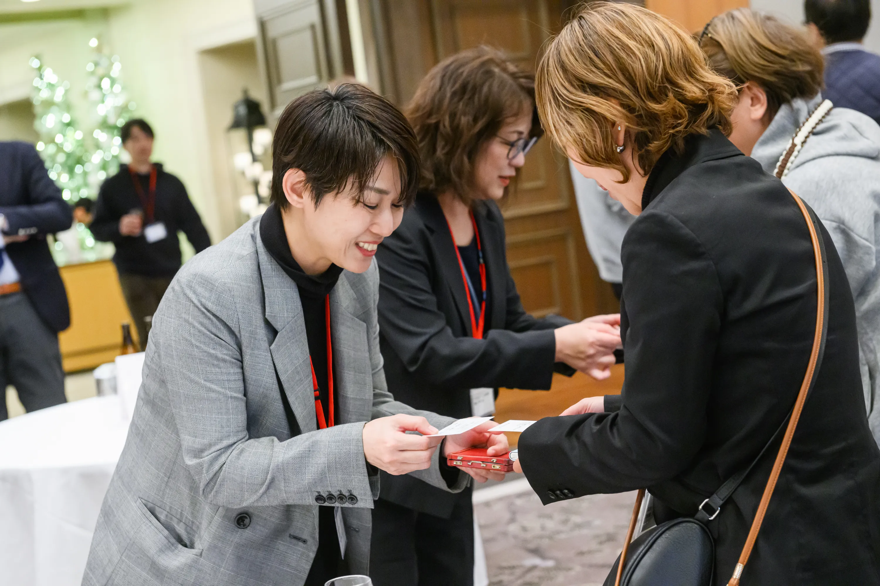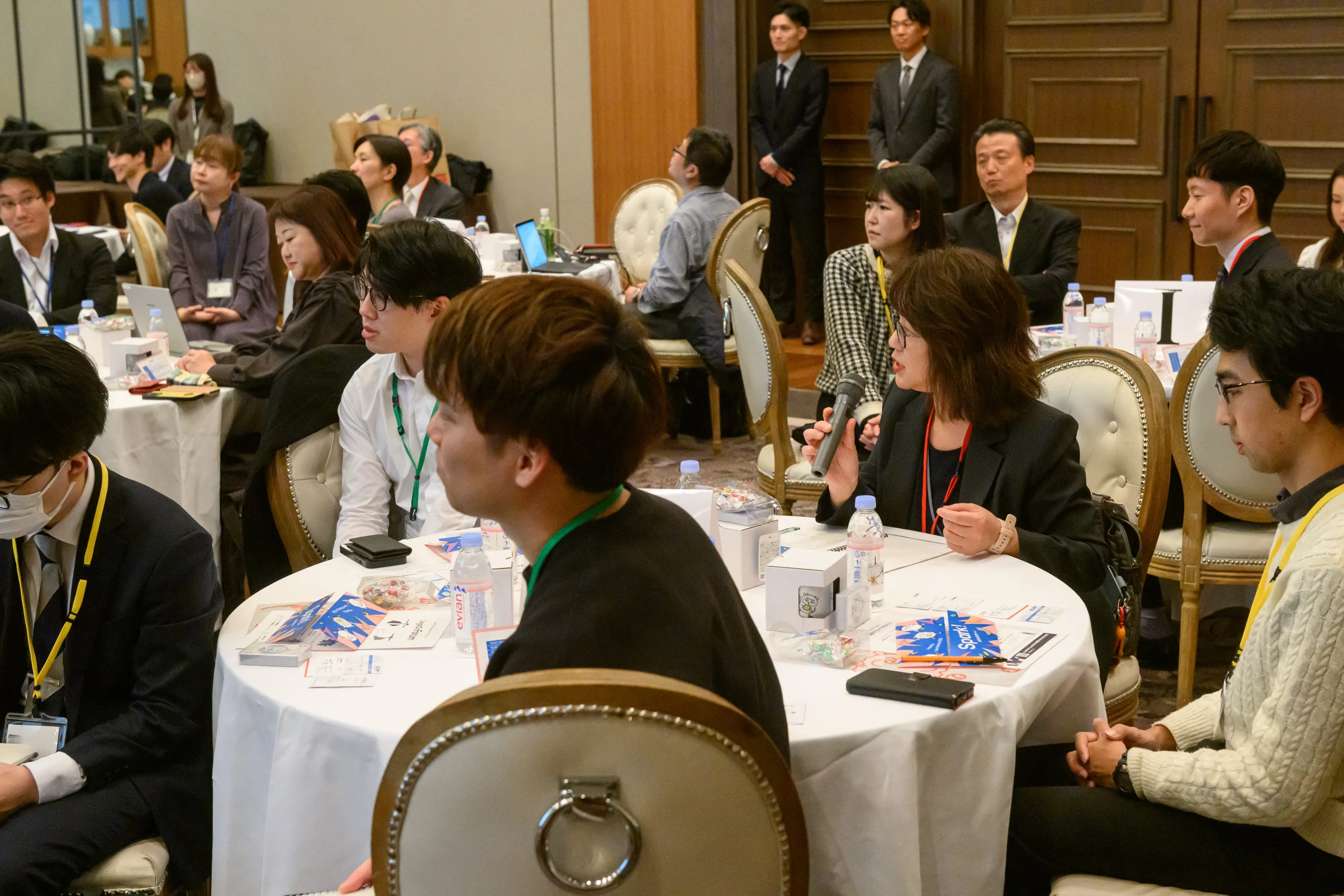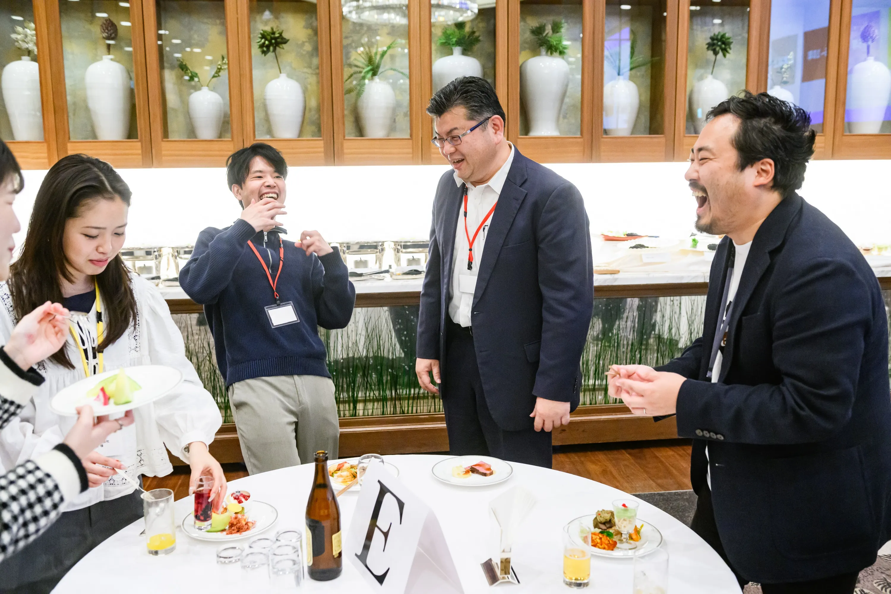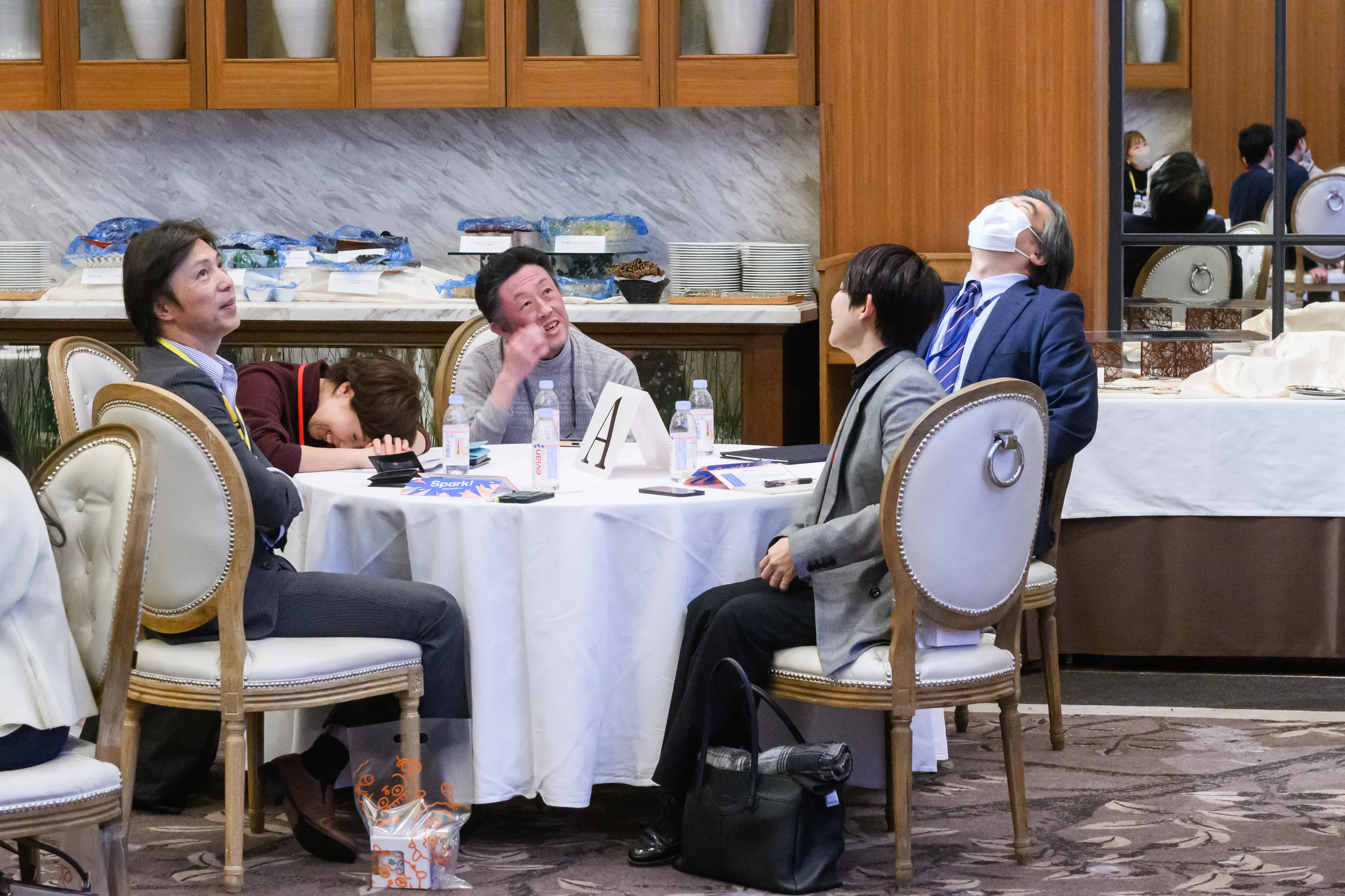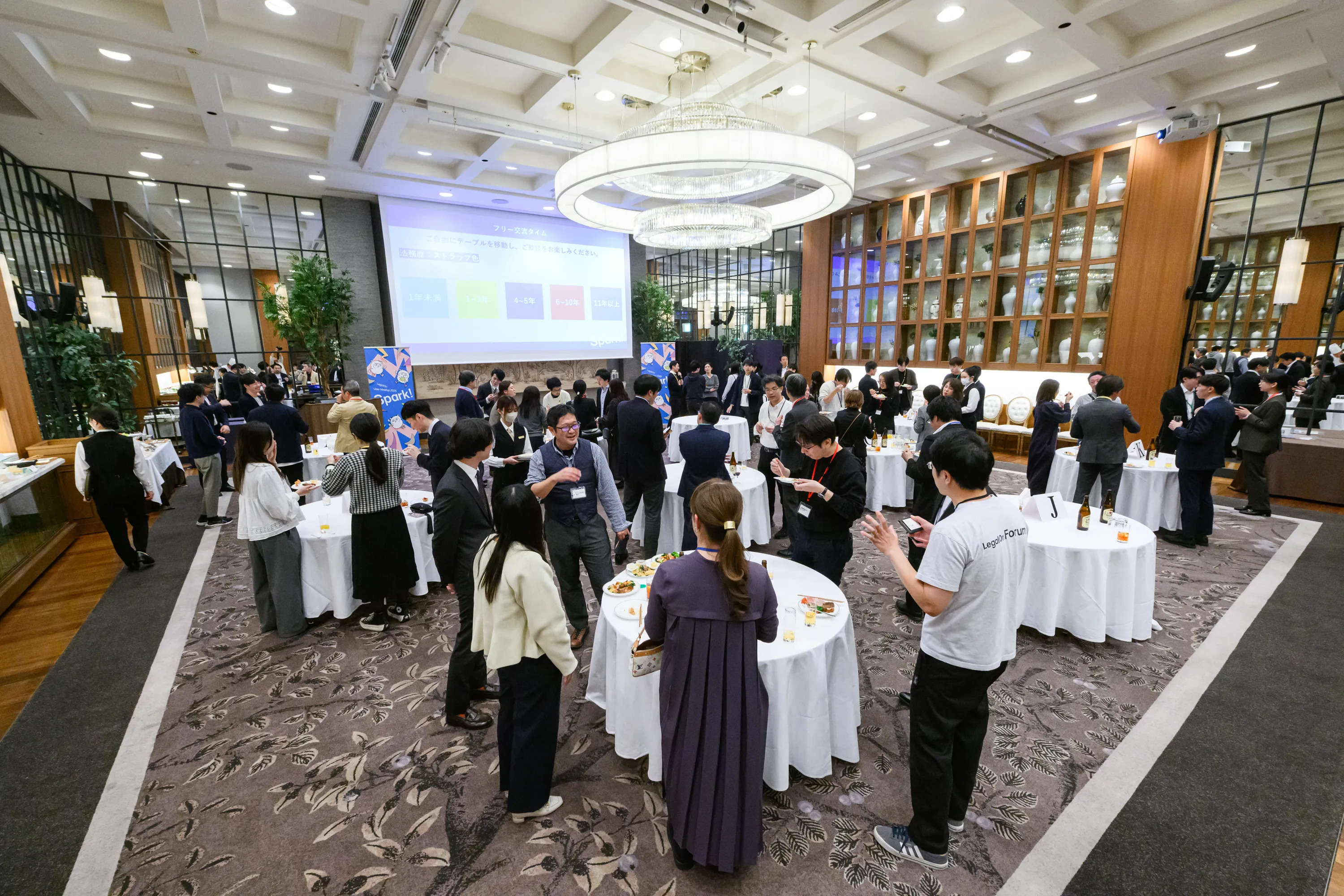 業界別のテーブルや、法務歴が近い方同士で交流できる工夫を取り入れ、参加者の皆さまに懇親を深めていただく時間に。