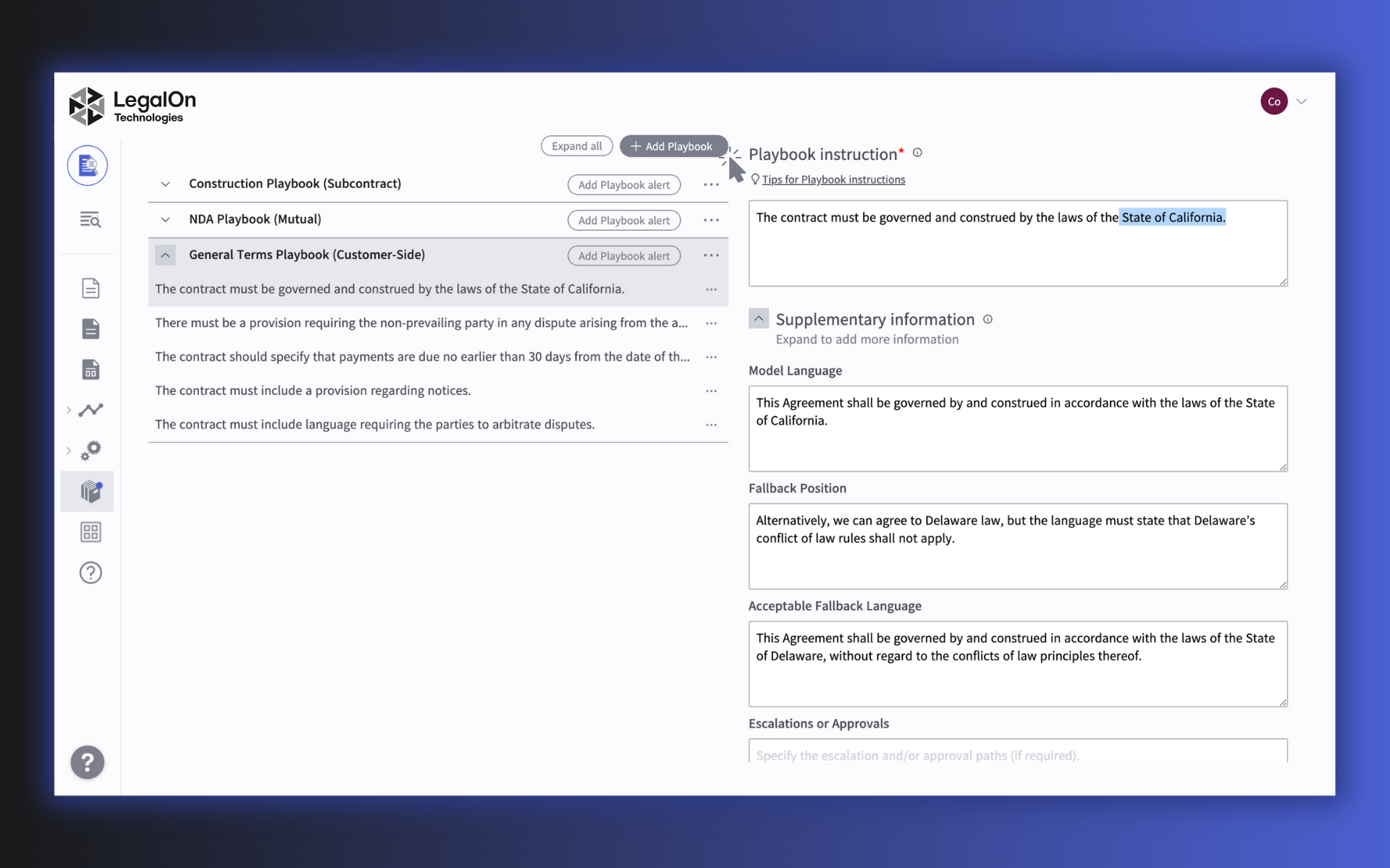 My Playbooks is live for all LegalOn customers as part of their LegalOn subscription. LegalOn will also provide services to help legal teams build and document their playbook collection.
