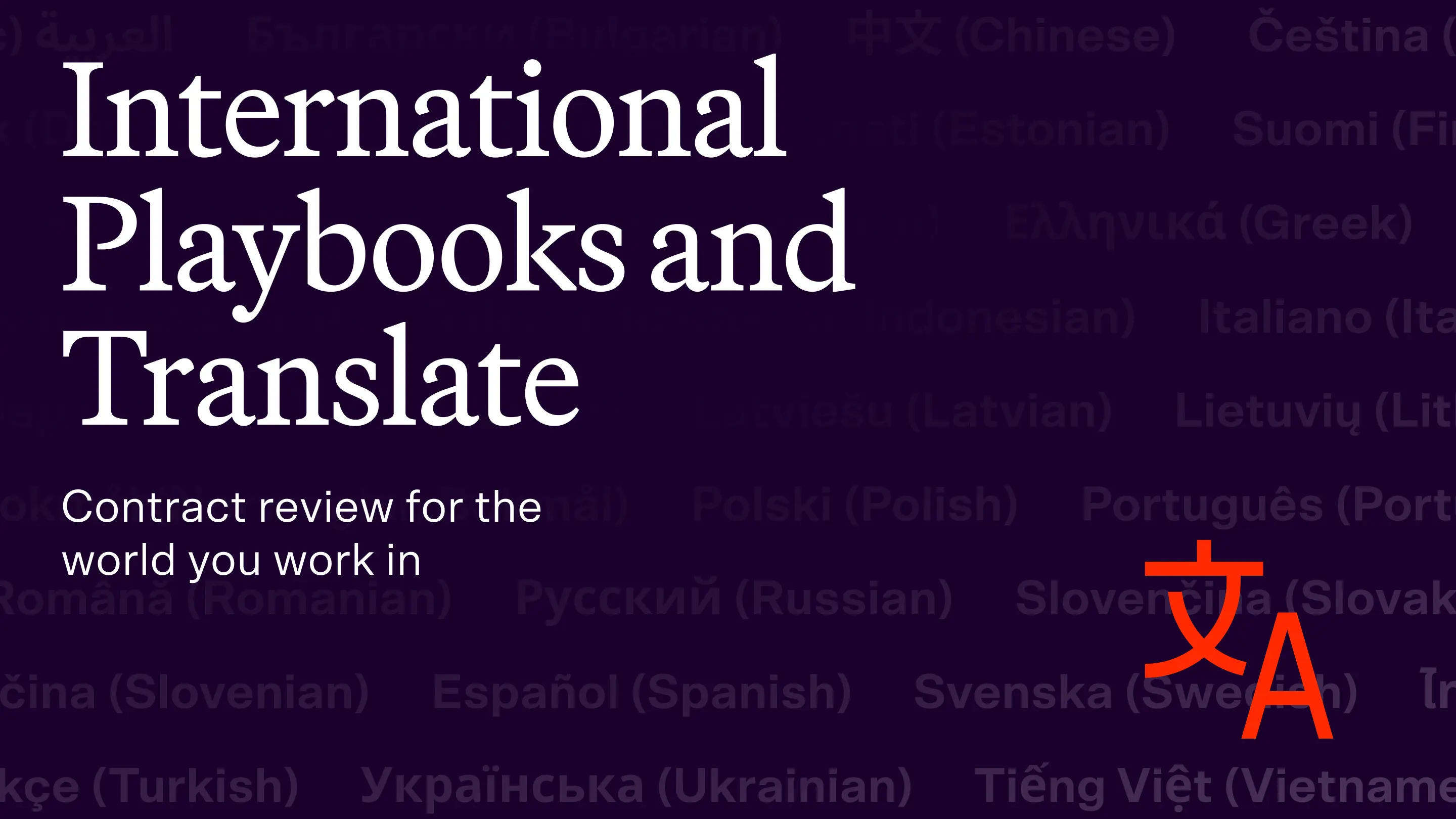 International Playbooks and AI-powered translation capabilities across 20+ countries and languages accelerate legal workflows for in-house teams across the globe
